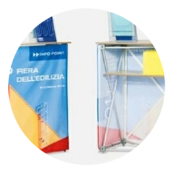 Grand classique des foires et expositions professionnelles, le présentoir parapluie offre une vaste surface publicitaire en toute simplicité.