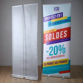 Mettez en avant votre message avec élégance et efficacité grâce à nos Roll'up personnalisés, des supports publicitaires qui font la différence.